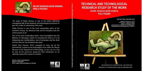 Mujer Desnuda painting has gone through the extensive testing and analysis led by Museum Director Rafael Díaz Chacón, Ph.D of the Museum of Contemporary and Postmodern Art (MACPO) in Bucaramanga, Colombia. The scientific tests performed on the painting are SEM (Scanning Electron Microscope) and X-Ray (stereoradiography and autoradiography) scanning. A digital format certified analysis of the painting will be available for review to selected members of the art world and news media upon request.
